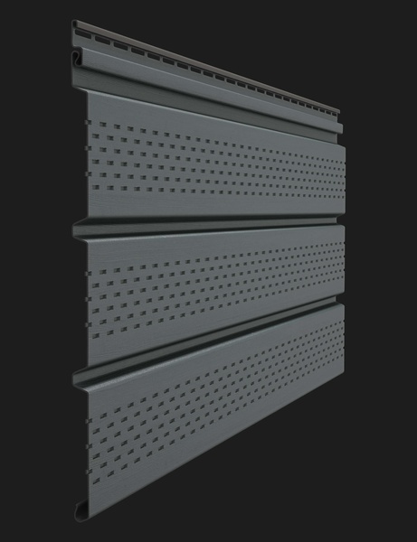Софит Docke PREMIUM T4 с полной перфорацией в графитовом цвете - это стильное и функциональное решение для отделки фасадов и потолков. Изготовлен из высококачественного материала, он обладает прочностью и долговечностью. Полная перфорация позволяет обеспечить хорошую вентиляцию и защиту от конденсата, предотвращая появление плесени и гниения. Графитовый цвет придает софиту элегантный и современный вид, который легко сочетается с различными стилями дизайна. Установка софита Docke PREMIUM T4 с полной перфорацией в графитовом цвете позволит создать уютную и стильную обстановку в вашем доме или офисе.