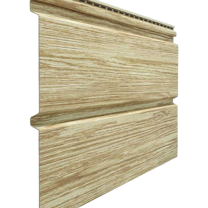 Благодаря глубокой офсетной печати по горячей поверхности панели сайдинга не тускнеют и не выгорают на солнце, сохраняя красивый натуральный тон и естественный древесный рисунок. Для облицовки фасада в единой эстетике используйте углы и профили в цвете «Яблоня».